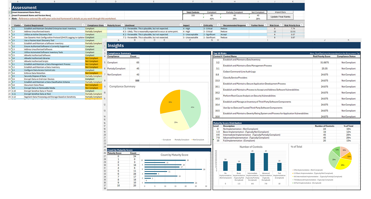 The Risk Prioritization Workbook helps you connect framework results to real-world risk, assign consistent scores, and prioritize what to fix first — so time and budget go where they matter most.